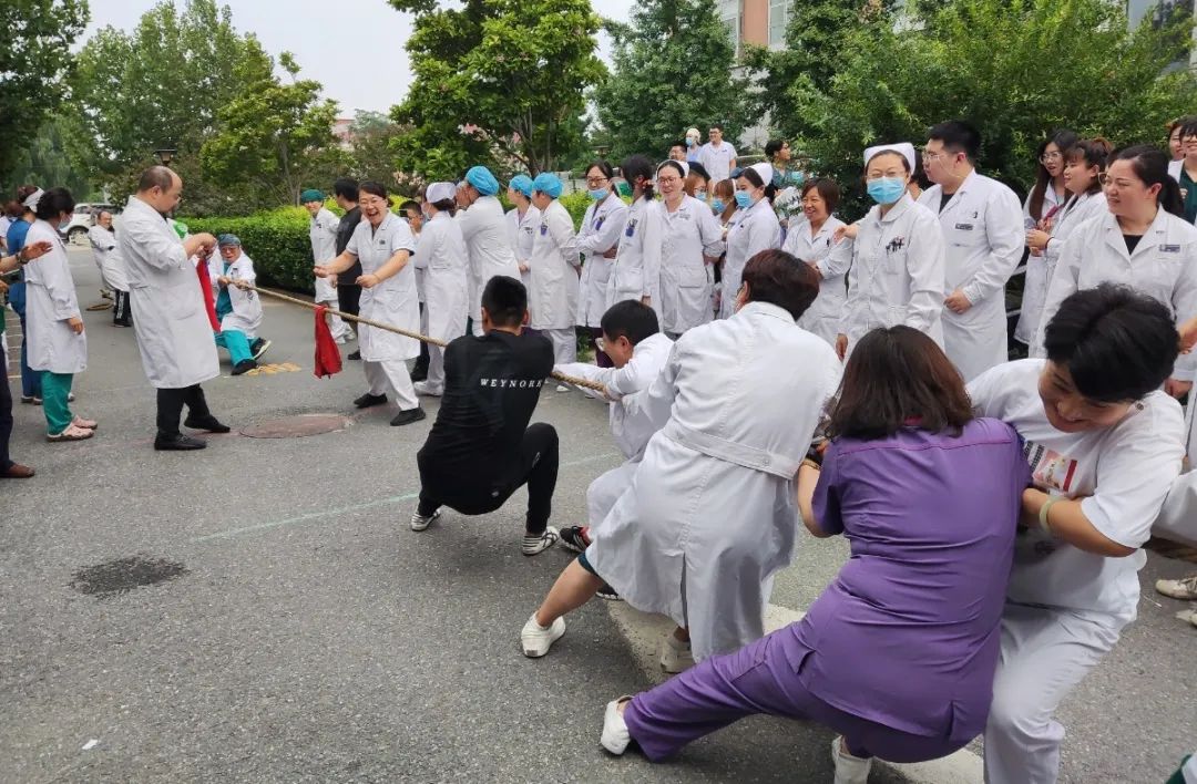 “加油!加油!……”8月8日,丰台区中医医院(南苑医院)激情呐喊声一片,这正是医院工会结合第十五届全民健身日组织职工进行的拔河比赛。此次比赛以促进科室间交流为宗旨,丰富职工们的业余生活为目的,倡导大家积极健康的生活方式,通过比赛发扬团队精神,增强职工间的凝聚力,受到大家的高度欢迎。