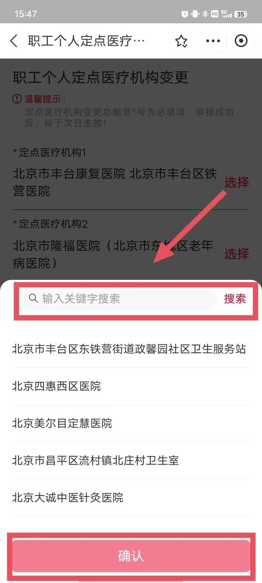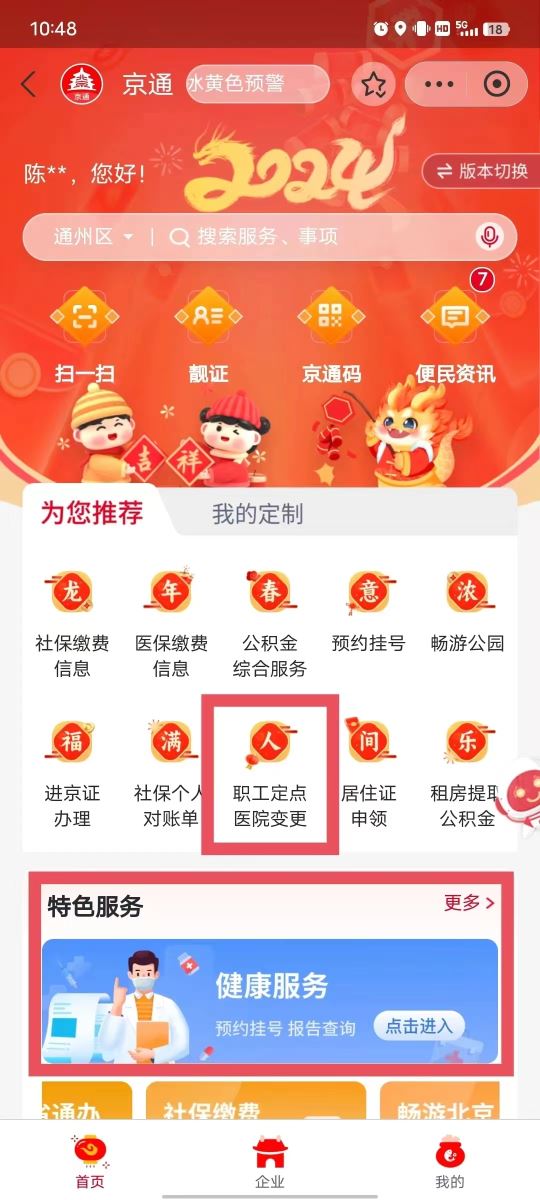 1. “京通”小程序通过“个人定点查询修改”或“健康服务”板块进入;
